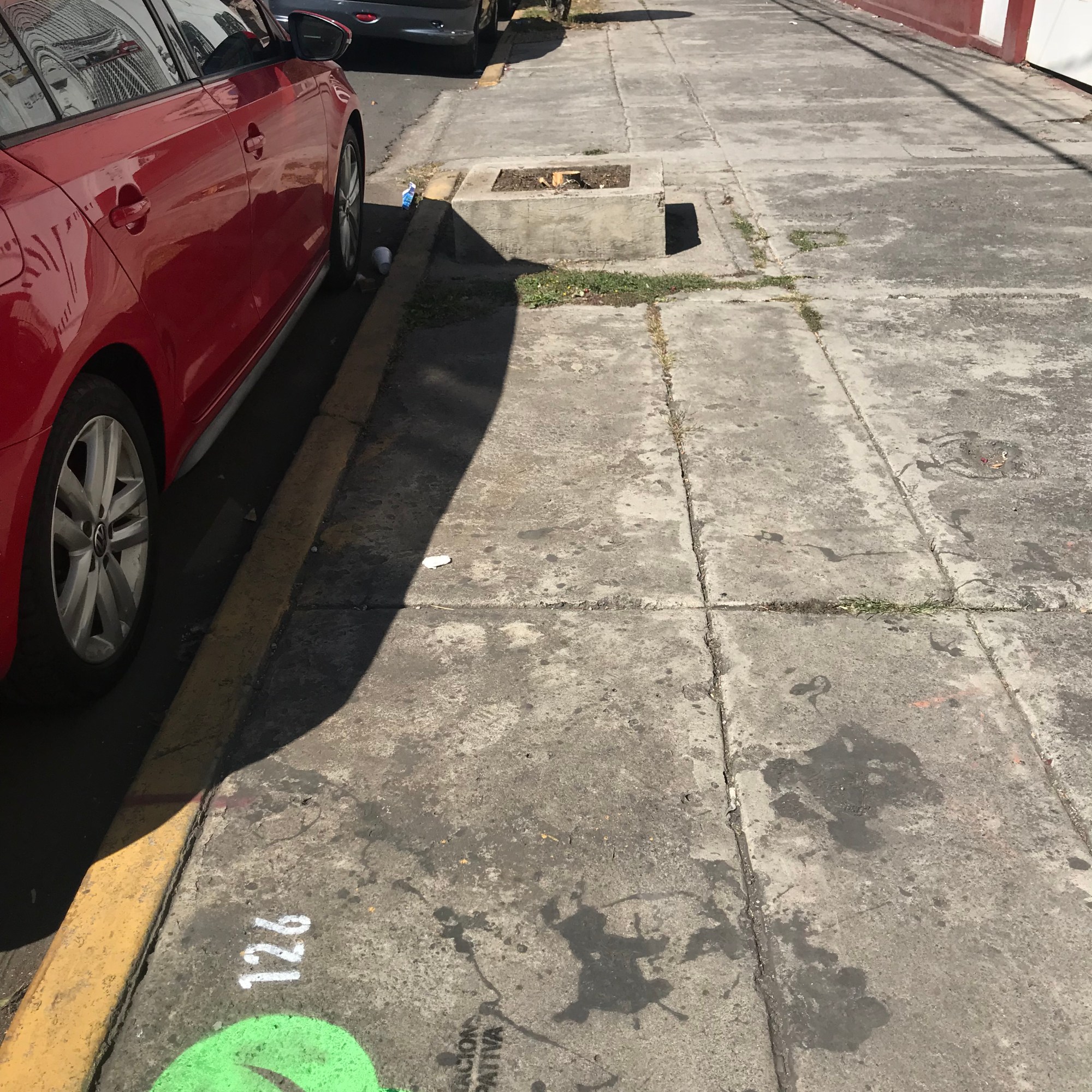 Las banquetas grises deben ser objeto para potencializar la cobertura de infraestructura verde. Con mayor frecuencia se va estipulando en la literatura ambiental la importancia de los árboles en las calles: la temperatura aumenta sin o poca masa vegetal. La infraestructura verde son sistemas vivos generadores de servicios ambientales y biodiversidad, recordemos que no se puede comprender la salud humana sin la salud de los ecosistemas. Por ello, cuando la administración pública brinda infraestructura peatonal de calidad y los peatones se benefician en el cumplimiento de esas acciones, se genera el espacio público saludable. El espacio público saludable en su producción conceptual y material está compuesta por tres factores clave: 1) involucramiento de las personas, 2) efectivo cumplimiento de la administración pública y 3) mejoramiento de la infraestructura peatonal como es la incorporación de infraestructura verde mediante la plantación de árboles.
